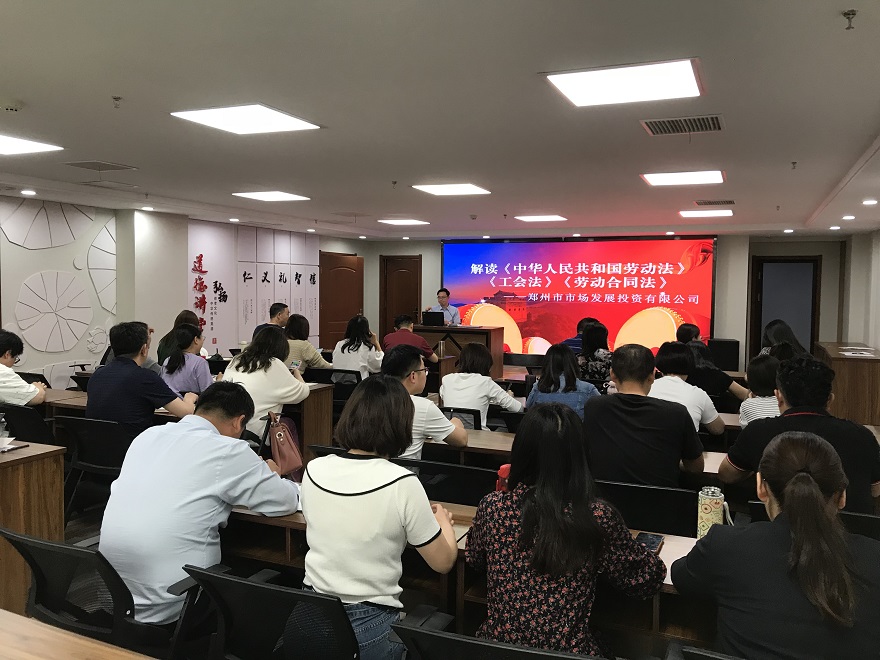 根據(jù)《2021年鄭州市普法依法治理工作要點》文件精神和市國資委關(guān)于普法教育工作要求,為扎實推進普法依法治理工作,為“八五”普法開好局、起好步,5月13日下午,鄭州市市場發(fā)展投資有限公司組織開展《中華人民共和國勞動法》《工會法》《勞動合同法》等法律知識講座,公司本部全體人員、各子公司中層以上管理人員及法務(wù)部、經(jīng)營部工作人員參加培訓(xùn)。