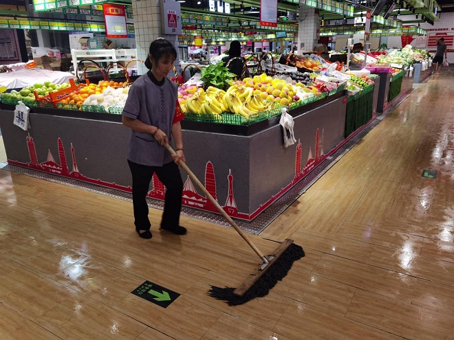 農(nóng)業(yè)公司安全小組人員立即啟動防汛安全應(yīng)急預(yù)案,對市場易積水點、漏水點、排水口進(jìn)行檢查清理,做到積水及時排放,防止下水口堵塞、雨水積存,并鋪防水腳踏墊,全天候清掃保潔,豎立標(biāo)識,引導(dǎo)市場商戶、購物群眾注意防滑安全。對容易出現(xiàn)水電火災(zāi)的插排、線路、交換點等進(jìn)行防水處理,防止火災(zāi)、觸電現(xiàn)象發(fā)生,及時發(fā)布災(zāi)害預(yù)警信息和防災(zāi)避災(zāi)辦法到市場商戶群,督促各商戶從業(yè)者積極做好氣象災(zāi)害預(yù)防工作,做好市場必需品供應(yīng),保障惡劣天氣物價穩(wěn)定。