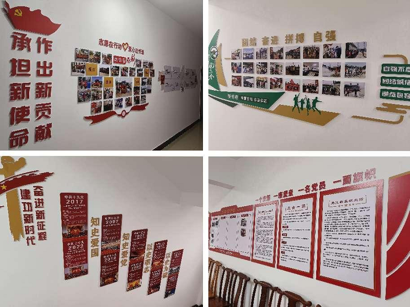 文化墻內(nèi)容包括黨的一大到二十大黨史、四個(gè)意識(shí)、四個(gè)自信、兩個(gè)維護(hù)、黨員干部職工風(fēng)采、黨建品牌、黨務(wù)公開、黨員示范崗等內(nèi)容,陣地建設(shè)的打造,不僅宣傳了黨建知識(shí)、展現(xiàn)了黨員形象,還涵蓋了當(dāng)前黨建工作的重點(diǎn)內(nèi)容,將黨建品牌上墻,可以很直觀的看到黨建深度融入生產(chǎn)經(jīng)營工作取得的實(shí)效性做法,可以讓職工群眾更深刻直觀的了解黨員先進(jìn)形象,同時(shí)不斷激勵(lì)黨員創(chuàng)先爭優(yōu)、爭做模范,進(jìn)一步提升了黨建的文化內(nèi)涵,使廣大黨員群眾在潛移默化中了解、支持、深化黨建工作,不斷提升黨建活力,發(fā)揮黨建引領(lǐng)作用。